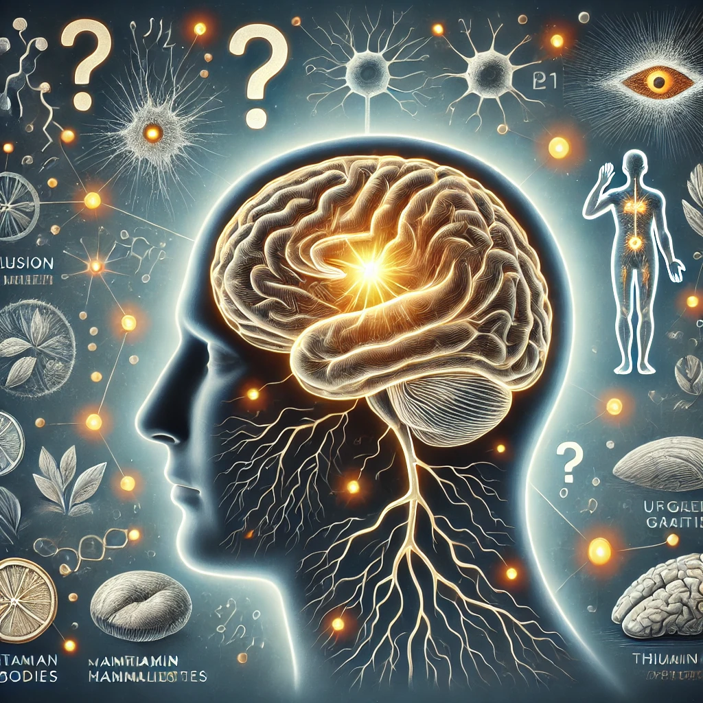 Wernicke’s Syndrome, or Wernicke’s Encephalopathy, is a serious neurological disorder caused by a deficiency of thiamine (vitamin B1). It is often associated with chronic alcoholism but can also result from malnutrition, severe vomiting, or conditions that impair the absorption of nutrients. The syndrome primarily affects the brain and nervous system, leading to symptoms such as:
